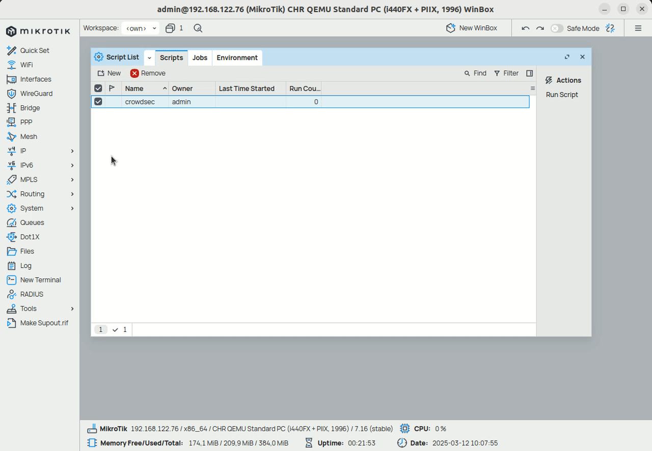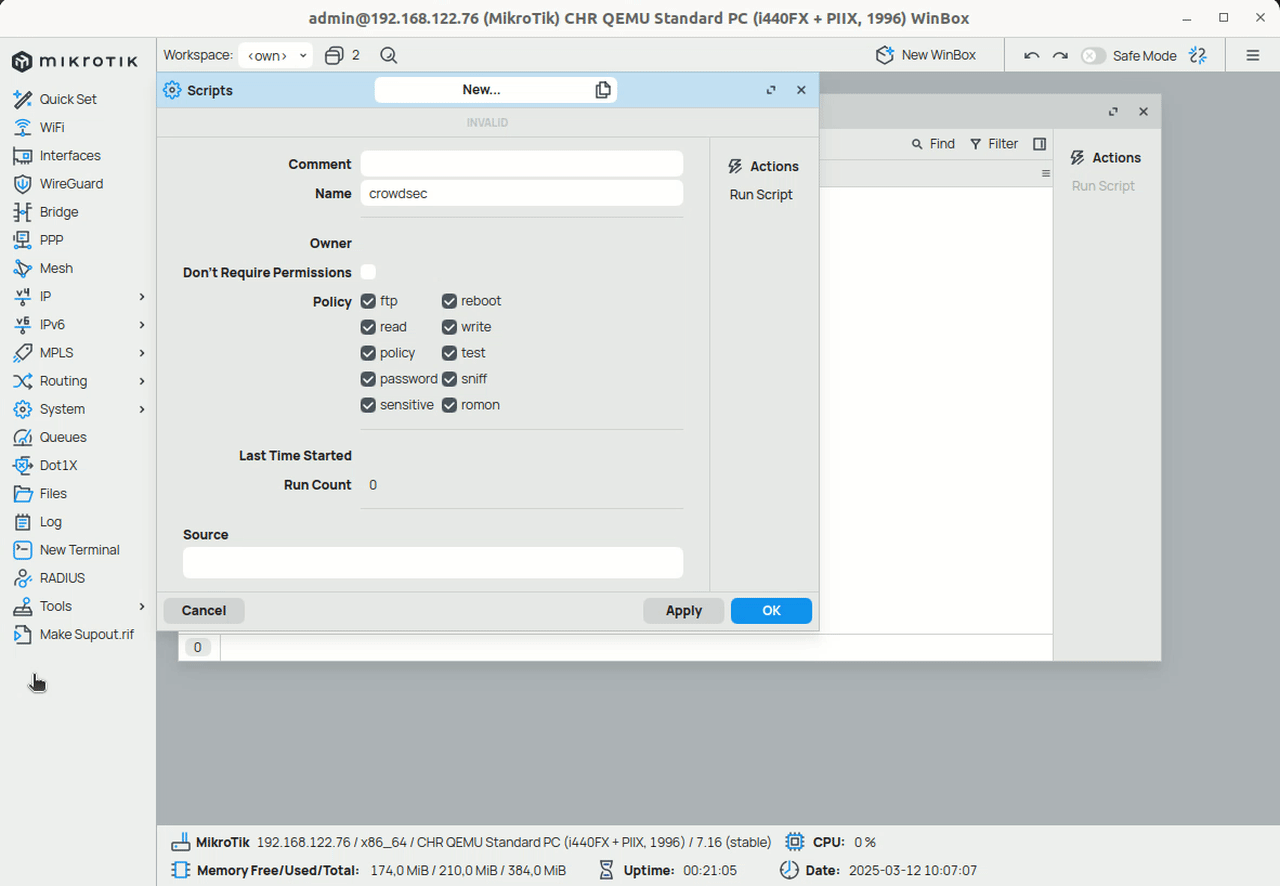 - Create a script that will fetch the blocklist from the CrowdSec API and import it into the Mikrotik firewall.
